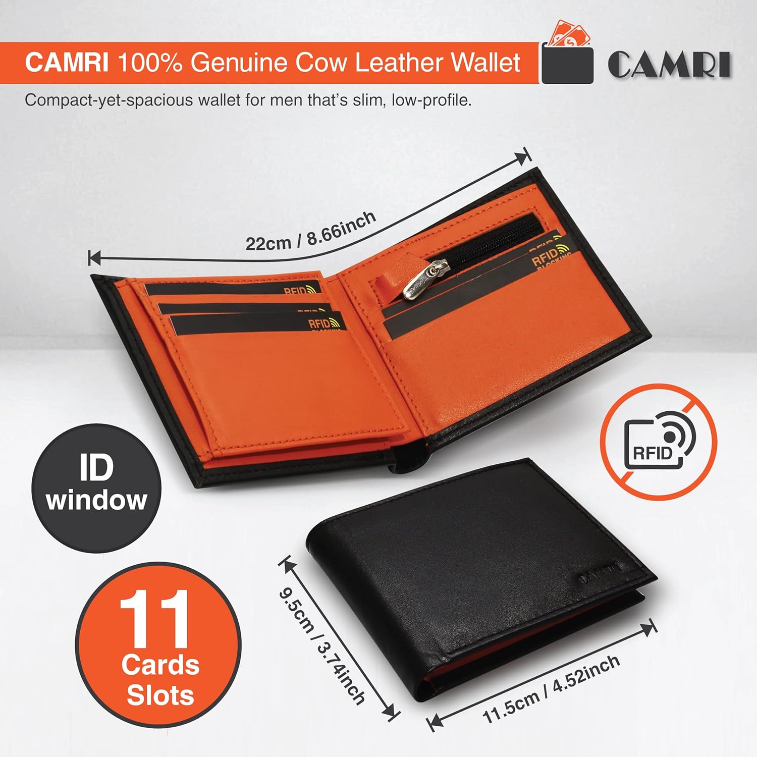 - 11 interior card slots to store all your credit, debit, and ID cards
