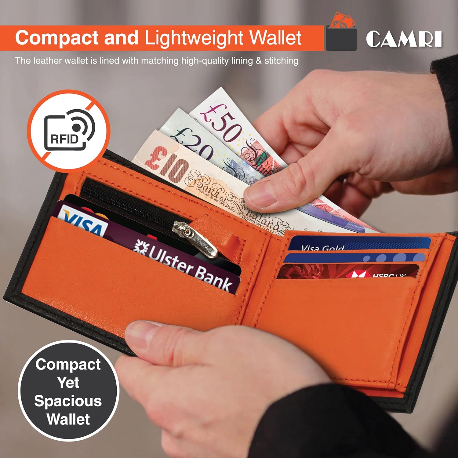 - 2 spacious banknote compartments to keep your cash neatly organized
